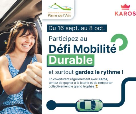 Avec l’application Karos, participez au Défi Mobilité Durable ! Du 16 sept. au 8 oct. covoiturez régulièrement et tentez de…