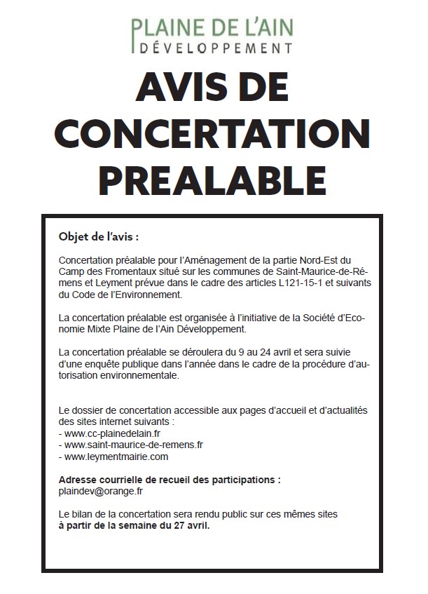 Accueil   >  Nos actualités   >  Camps des Fromentaux : AVIS DE CONCERTATION PREALABLE