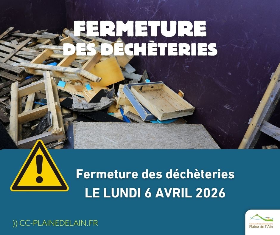 Les déchèteries étant fermées ce lundi 6 avril, nous vous remercions de bien vouloir prendre vos dispositions.
